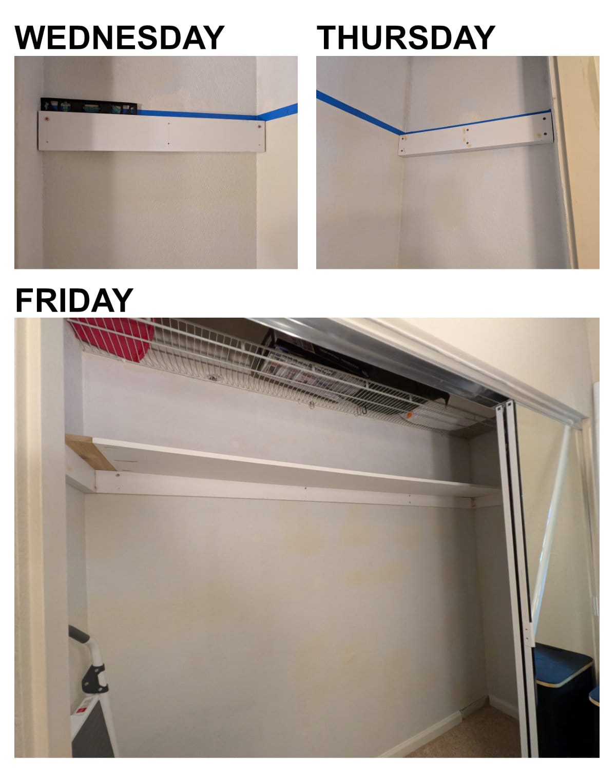 Day 2-4: Remove old shelf and attach new shelf cleats