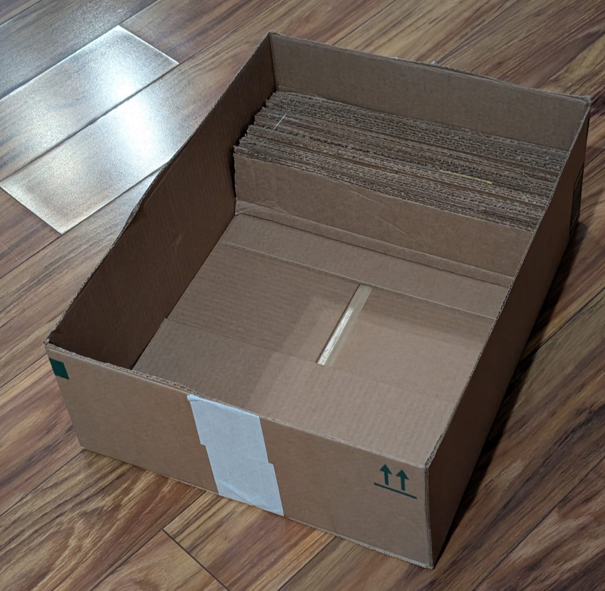 We order a lot of things online. As such, we accumulate a lot of cardboard boxes. A year ago, I thought it would be fun to make a cat scratcher from the cardboard I would have otherwise recycled. So I haphazardly cut strips (just eyeballing them, no measurement) and shoved them into a box, but when Poshie tried to use it, the strips all fell out.