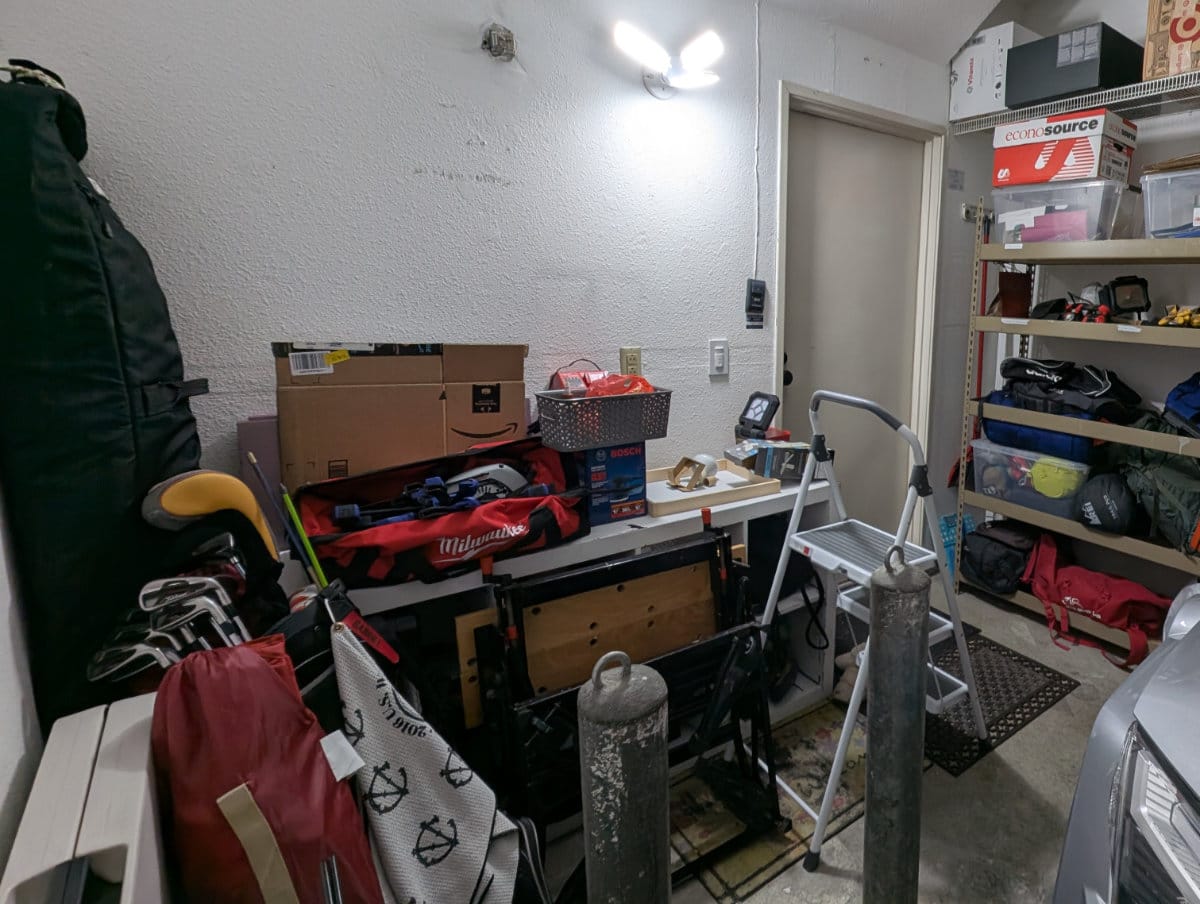 Anyway, even without the stepladder in the way, the "working area" of the garage feels cramped. (To be fair, there just isn't a lot of space.)