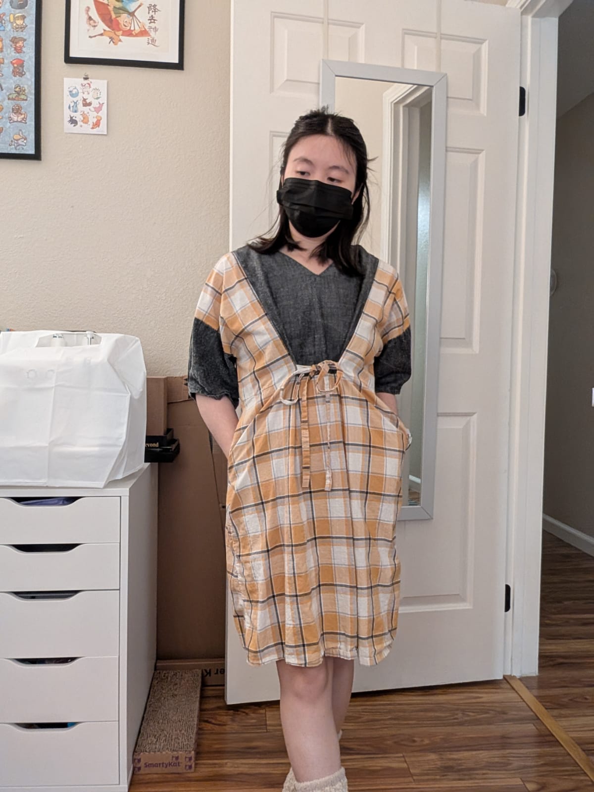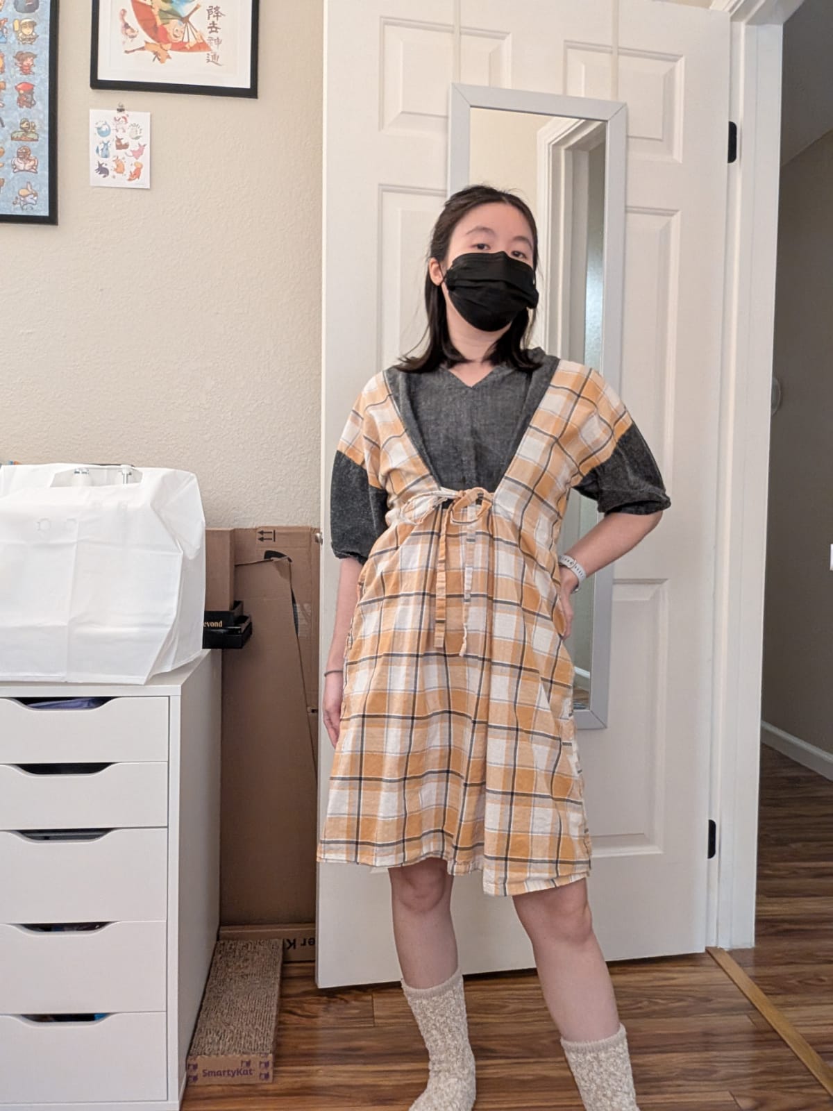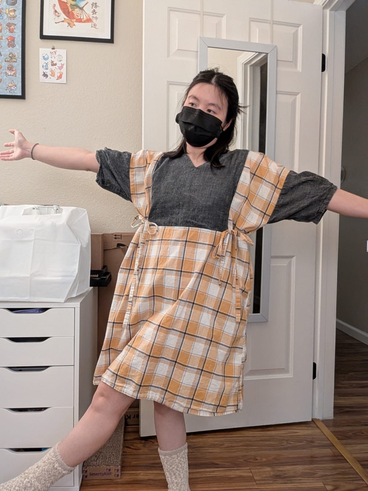 So I finally took better pictures. I opted to wear a mask because I realized part of why I sucked at taking pictures is because my smile was never to my liking. But I'm not here to showcase my face. I just want to show my dress. This was the perfect solution and I will probably be doing this more often.